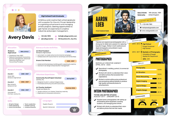 現在的AI軟體五花八門,總能給你很多履歷範本的選擇,有照片、有圖示、有圖表、甚至有五顏六色的花邊。雖然很吸睛,但千萬不要落入一個選擇的陷阱。應該要針對你應徵的職位、或是想申請研究所科系、MBA學位選擇適合的範本。如果你是個創意工作者,講求的是你設計的美感,那的確,藉由設計的元素凸顯你的履歷經驗是個不錯的選擇。